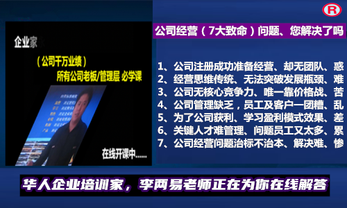 所以、华人企业培训家,李两易老师讲到,如果想得到 解决您行业发展的全部知识,那你必须跟这个老师深入的系统学习,找到自身企业的经营管理核心,及优势,此时才能完完全全为你解决你自身行业的所有发展问题,
