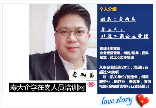 2、作为企业的员工,应充分认识到自己在岗位中的不足之处,加强专业技能的同时,并用心学习李两易老师的销售及服务等课程,通过提升个人与团队的在岗能力,为用户、为企业、为自己等 提供更多的工作效率与便捷,促进个人及企业,和社会的健康发展。